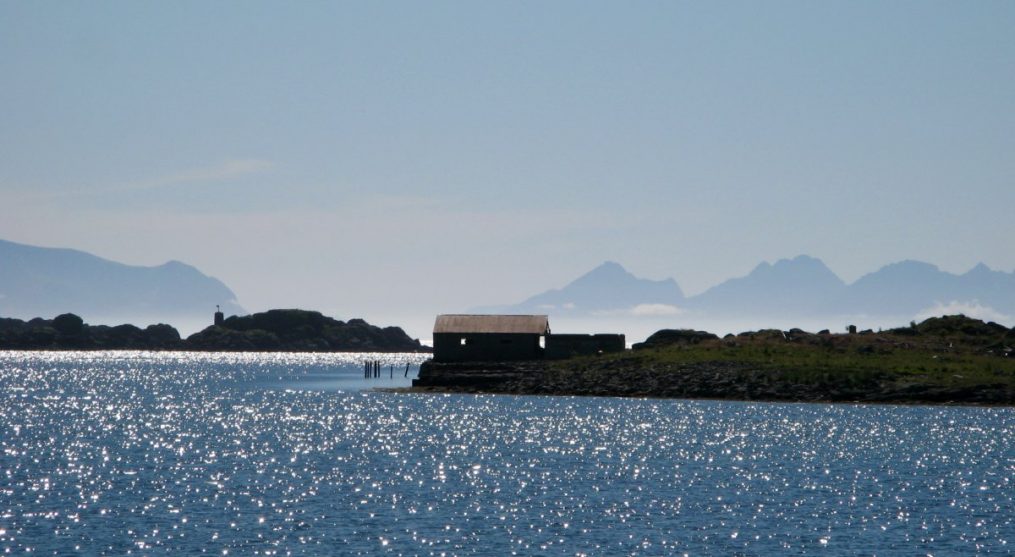 Hovden est ensuite un très joli petit port, avec une éolienne, des séchoirs à poisson, une petite plage, une montagne cerclée d’un nuage. De quoi prendre plein de photos.